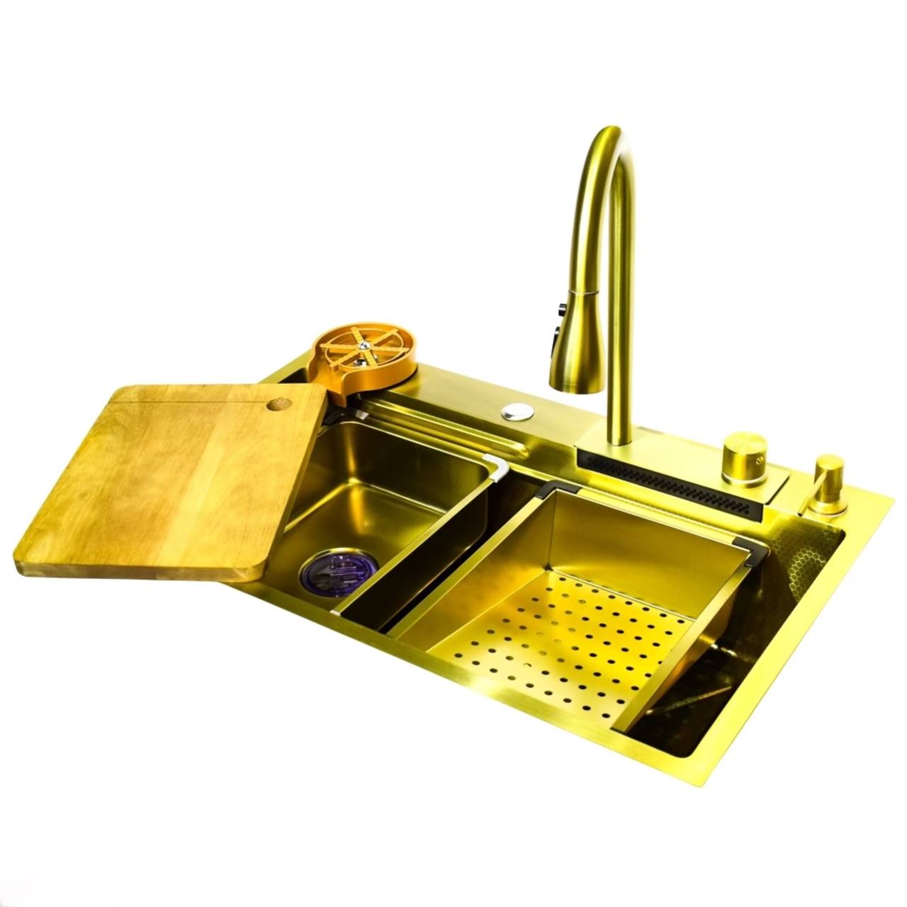 سینک آبشاری ولومی، خرید سینک آبشاری طلایی، قیمت سینک ولومی ایران ساختمانی، سینک استیل لوکس، سینک آشپزخانه مدرن، سینک استیل 304 ضد خش