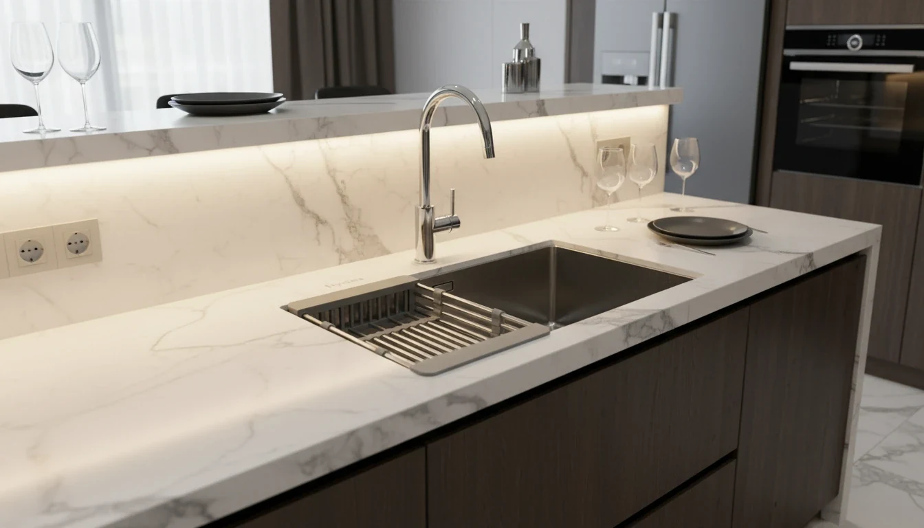 فرم هندسی متعادل، خم‌های دقیق و سطح صیقلی؛ هم برای آشپزخانه‌های مدرن، هم کلاسیک گزینه‌ای شیک است.