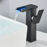 شیر روشویی پایه بلند آبشاری ال ای دی دار مشکی