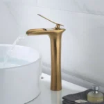 شیر روشویی آبشاری، شیر روشویی پایه بلند، شیر روشویی طلایی مات، شیر لوکس سرویس بهداشتی، شیر روشویی مدرن، خرید شیر روشویی آبشاری.